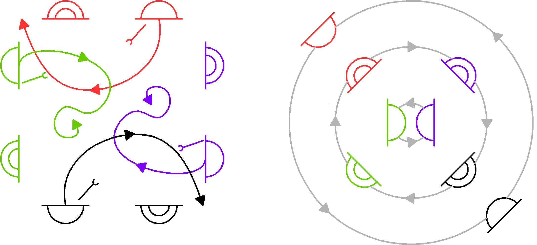 Такты 1-4. Главные дамы подают левую руку боковой даме слева от них и на 2 Ct+As вращаются на 3/4 оборота. В конце боковые дамы вместо ассамбле могут сделать пируэт направо. В итоге главные дамы оказываются во внешнем кругу, боковые — во внутреннем. Все дамы разворачиваются лицом из центра. Все кавалеры в конце 4-го такта делают подшаг в левую диагональ так, что главные кавалеры оказываются спина к спине со своими дамами.
